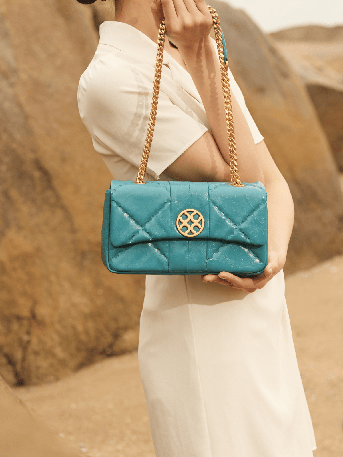 Mosaic Diamond Crossbody Bag - Blue