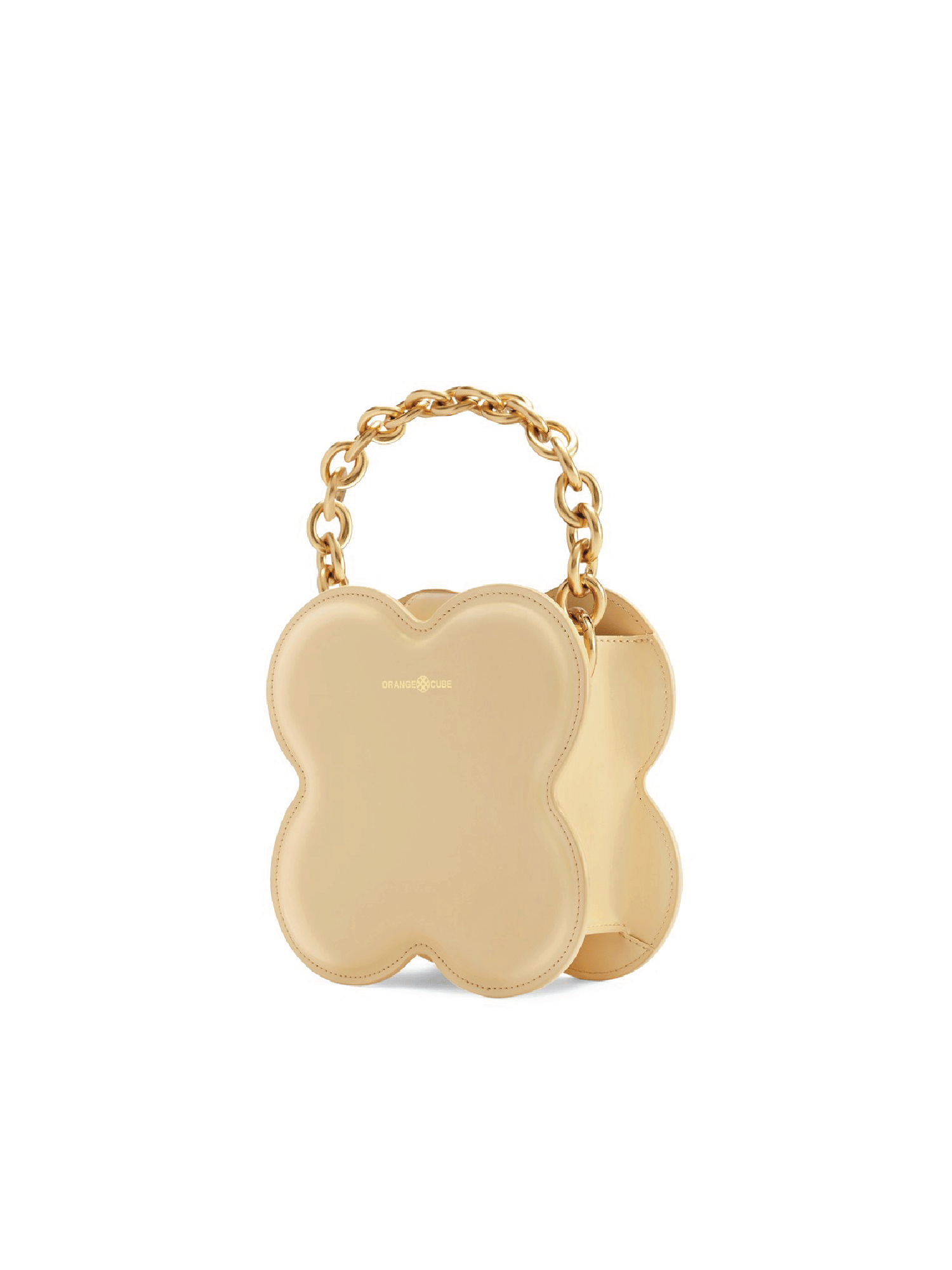 Following the lucky aesthetic concept conveyed in Orange Cube's brand DNA, the four-leaf clover shape is derived from the interior outline of the lucky horseshoe logo. The bag is designed with bold and bright colour to bring an independent and modern feeling to it's wearer. The hard box-like structure of the bag is contrasted with the soft cow leather covered on the surface. The clover bag comes with two straps. One is the thick golden chain handle, which adds additional class and caliber to the design. The other is an adjustable leather strap, providing a second way to convert your crossbody and shoulder bag.
