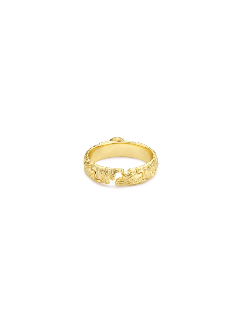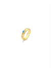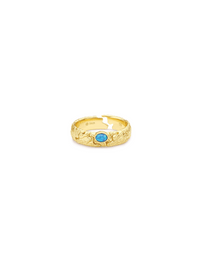 Blending fluid curves with a bold square silhouette, the Lucky Aqua Puzzle Ring fuses modern geometry with organic elegance. Crafted in 18K gold plating, its sculpted texture creates a dynamic contrast, while a vibrant opal centrepiece adds a playful pop of colour. The combination of structured form and flowing lines makes this ring a versatile statement piece, ideal for stacking or wearing solo. Whether for everyday wear or a subtle evening accent, this ring adds artistic charm to any look.